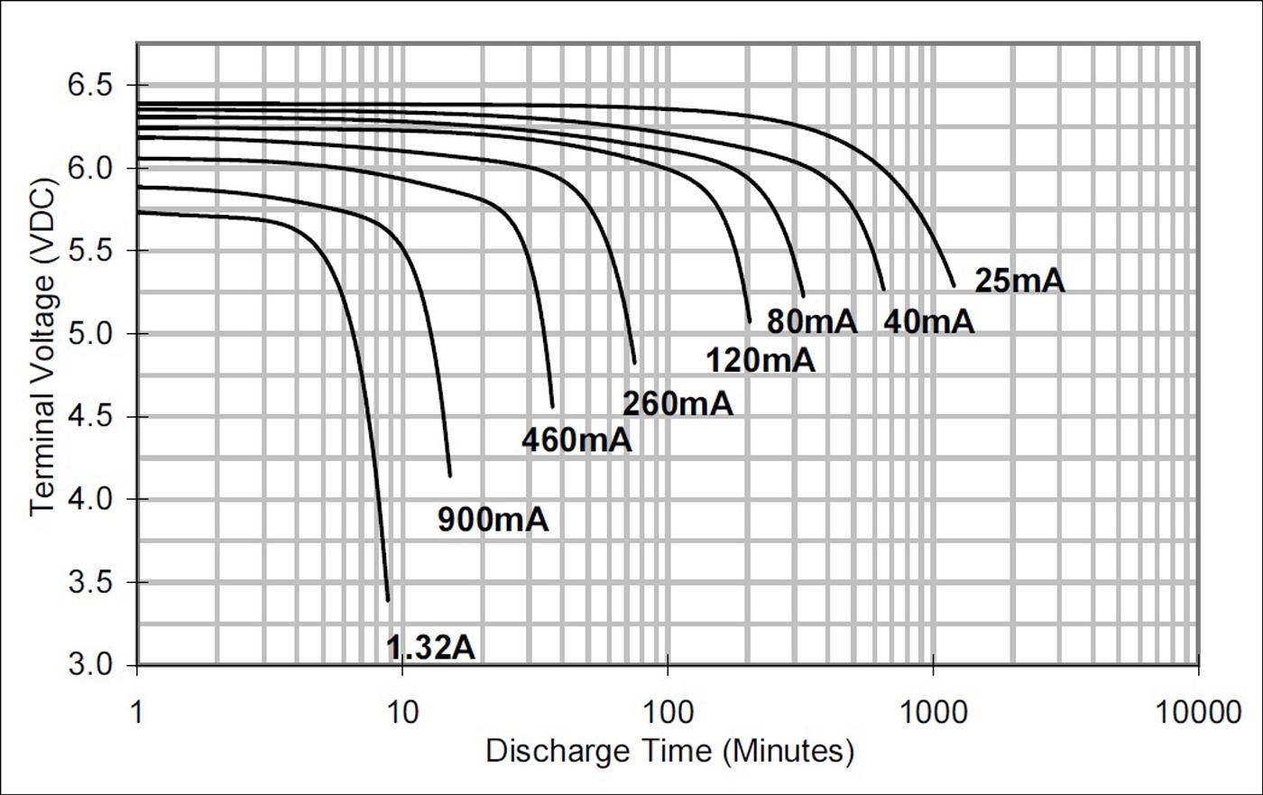 Limit the initial recharge current to 125 mA or less. To promote satisfactory performance in Cyclic applications, a minimum recharge current of 50 mA is recommended. Employ Charge Voltage Temperature Compensation when battery temperature is less than 50°F (10°C) 0r greater than 86°F (30°C), Use the Recommended voltage and normalize to 77°F (25°C). The use of compensation through the whole temperature range is not generally necessary, but doing so may optimize service life. If the Recommended recharge voltage is used, no Temperature Compensation is required within the range of 50 ? 86°F (10 ? 30°C) |